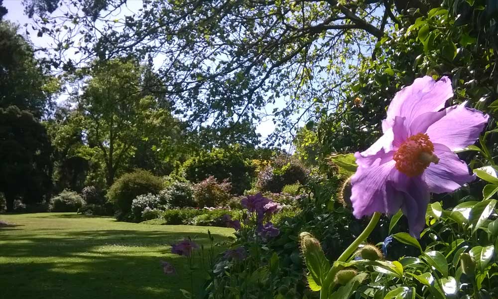 Tea is made from a plant that grows beside this lawn – Camellia sinensis, in the species border of the Camellia Collection. The fascinating Herb Garden has labels describing how these plants help people.