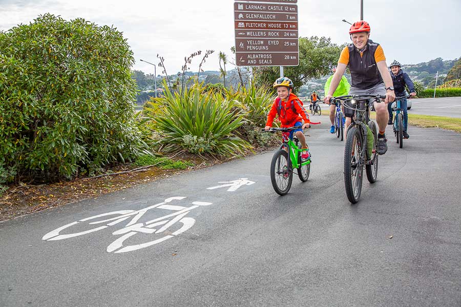 Start at Vauxhall and bike along the shared path to Macandrew Bay for an ice-cream or stop at Glenfalloch for a walk around its beautiful garden. This flat, sealed ride features boardwalks, picnic areas and steps down to the harbour and is perfect for children with lots to see and do. 20 min, 4km.