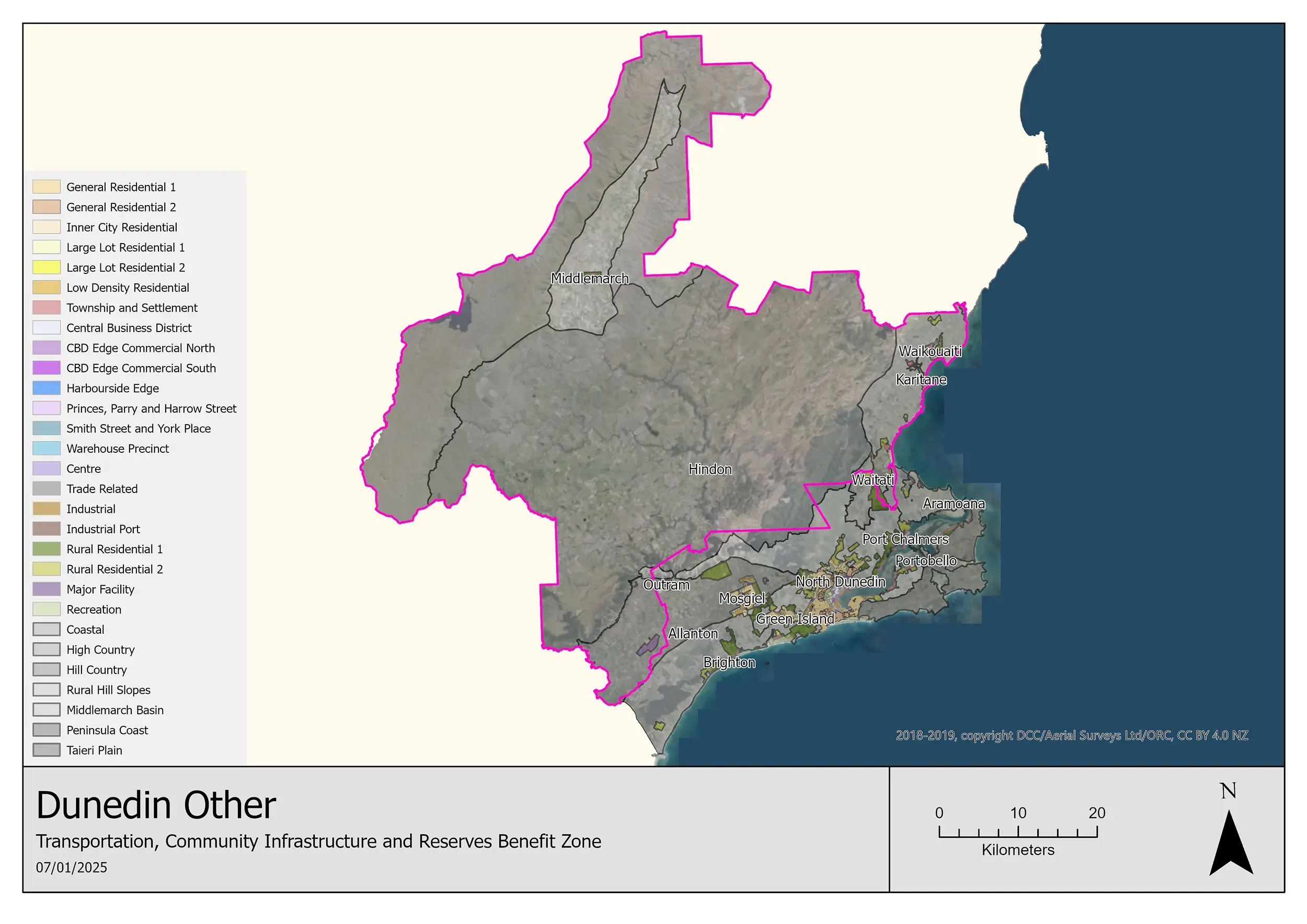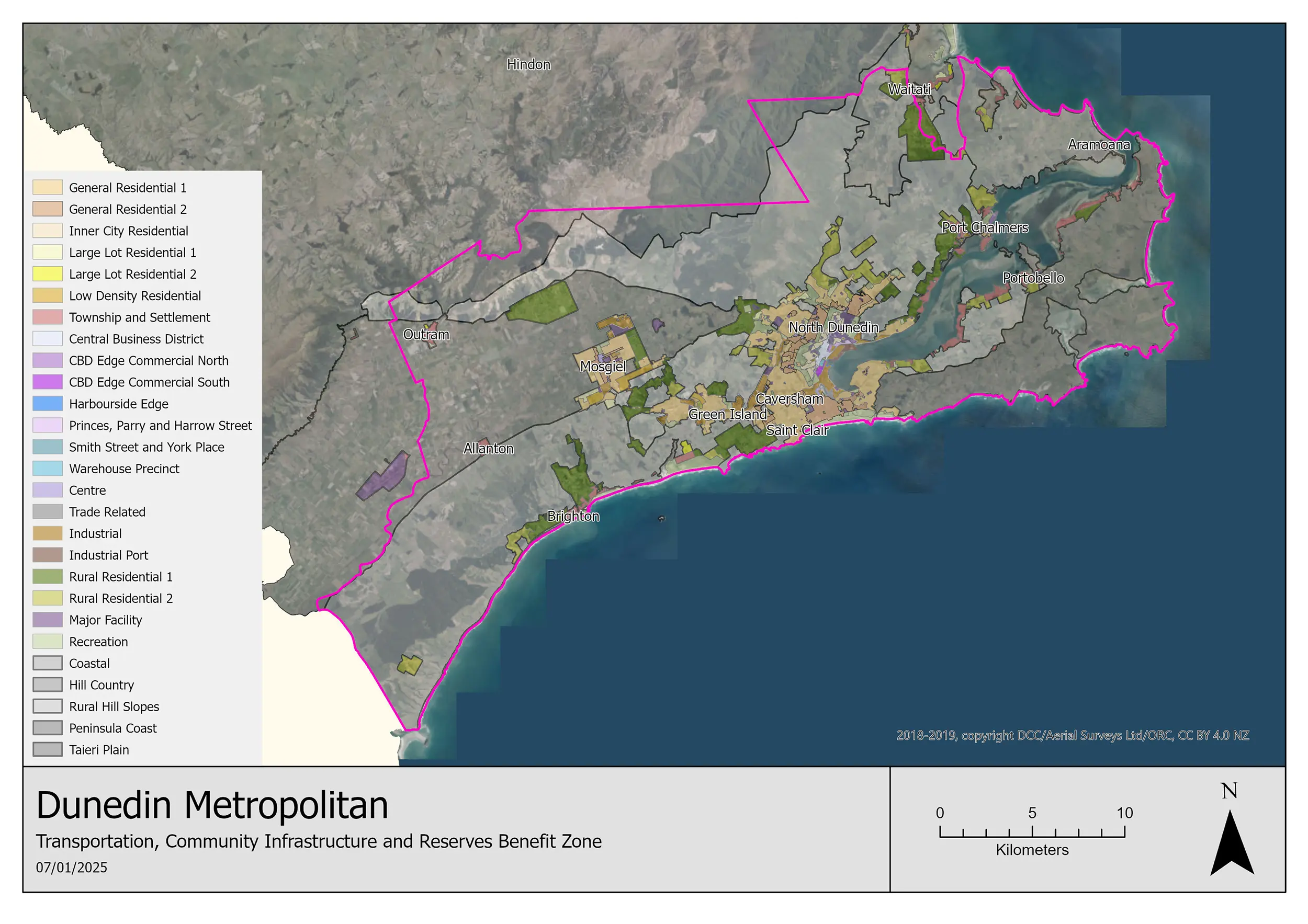 The core philosophy behind this decision is that the Dunedin Metropolitan area of benefit defines an area in which there are a high proportion of commuters which travel into Dunedin’s main urban area and that developments in this area should pay a different contribution to those that use mainly rural and township roads.