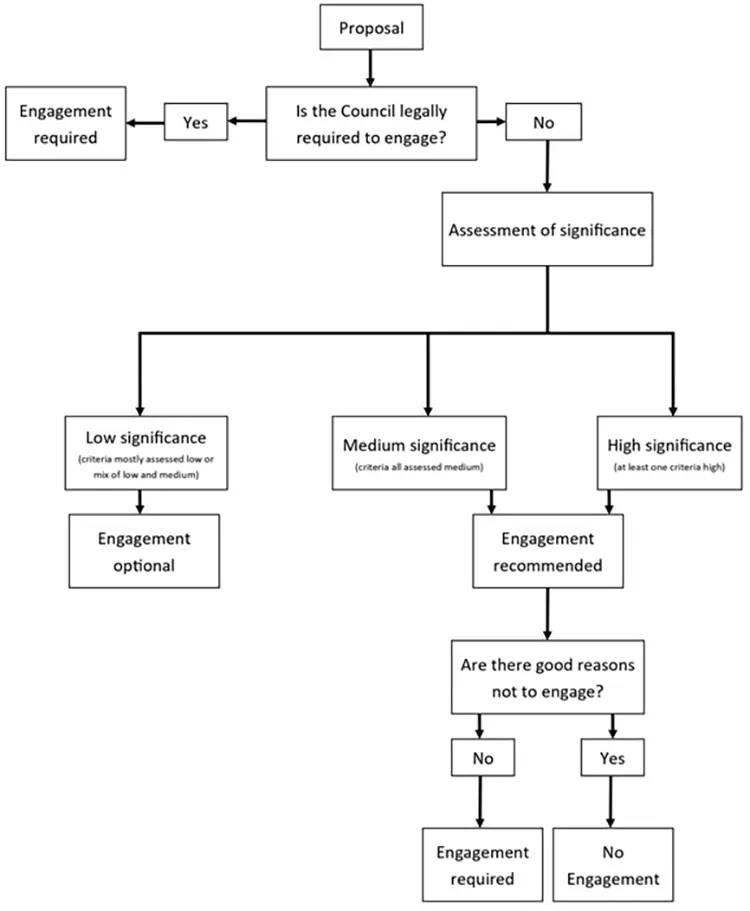 Whenever the Council does not formally engage, community views will still be considered before a decision is made and as much information will be provided to the public as possible. Figure 2 provides a summary of the factors the Council will consider when deciding when to engage.