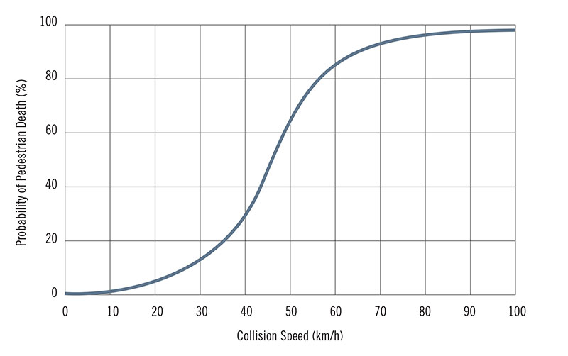 Figure 14. The influence of collision speed on the probability of pedestrian death32