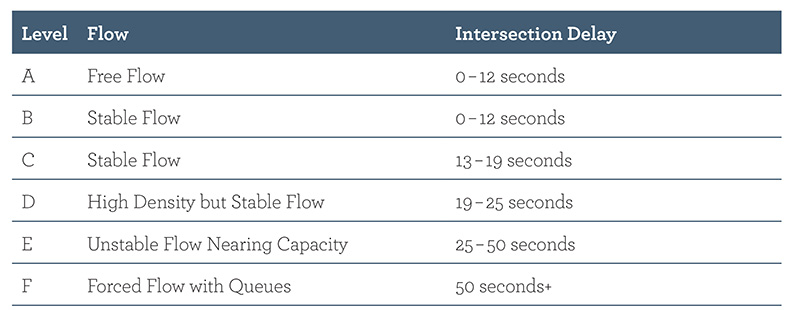 The DCC will accept congestion up to Level of Service E at peak and off-peak times* but will prioritise measures to improve efficiency for freight vehicles on designated freight routes. When and where congestion does need to be addressed on freight routes, the DCC will do so according to the principle of an Optimised Transport Investment Hierarchy (outlined in Section 7). *see Table 3 for definitions.