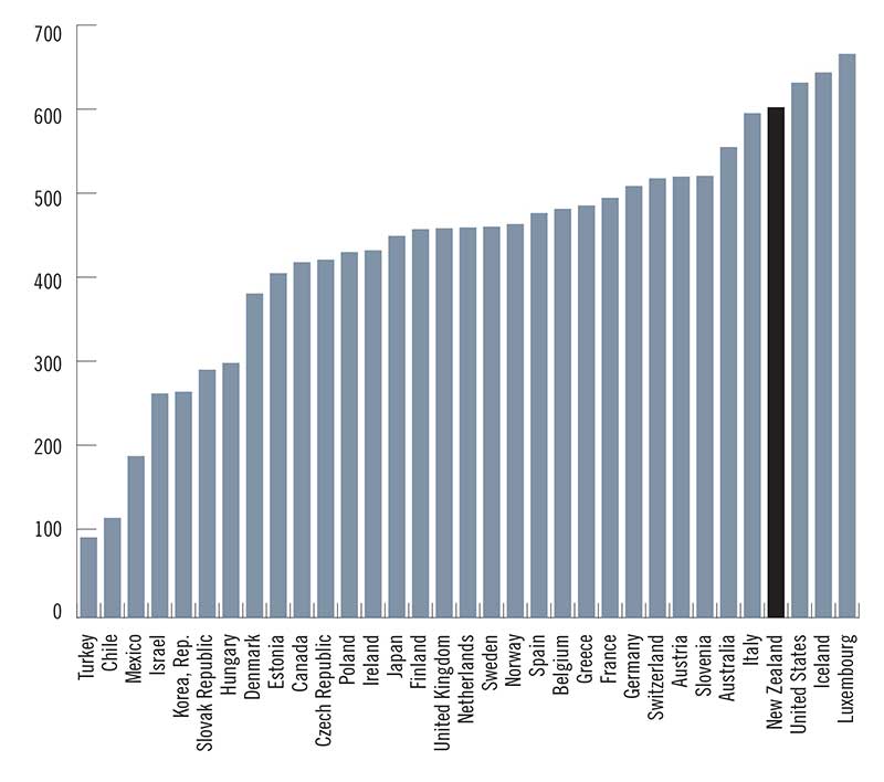 Figure 5. New Zealand has one of the highest levels of car ownership per capita in the developed world
